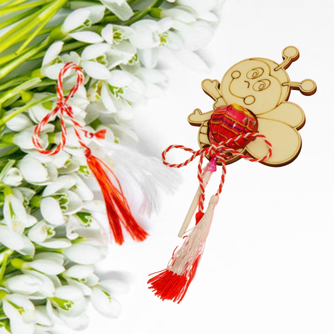 Martisor, Bomboana Chupa Chups, Albinuta, Lemn, 9×9 cm, Primavara, MB030