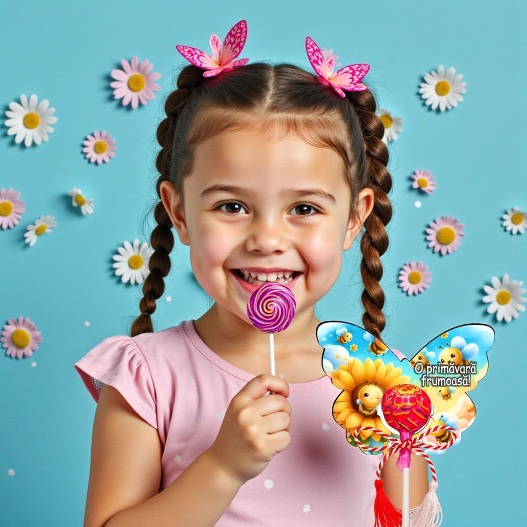 Acest mărțișor Chupa Chups cu model fluture este o alegere veselă și originală pentru a sărbători venirea primăverii printr-un cadou care îmbină tradiția cu bucuria copilăriei.