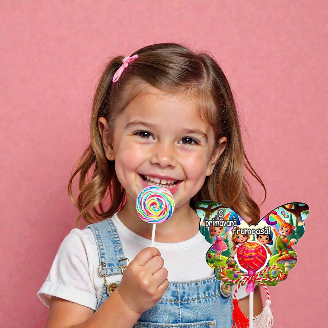 Acest mărțișor Chupa Chups cu model fluture este o alegere veselă și originală pentru a sărbători venirea primăverii printr-un cadou care îmbină tradiția cu bucuria copilăriei.