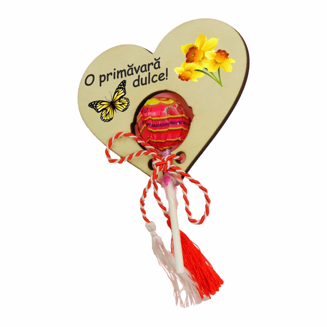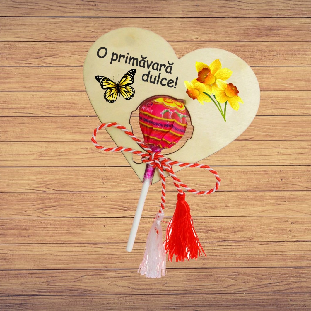 Acest mărțișor Chupa Chups cu model inimă este o alegere inspirată pentru cei care doresc să ofere un cadou de primăvară ce îmbină tradiția cu un gest dulce și plin de emoție.