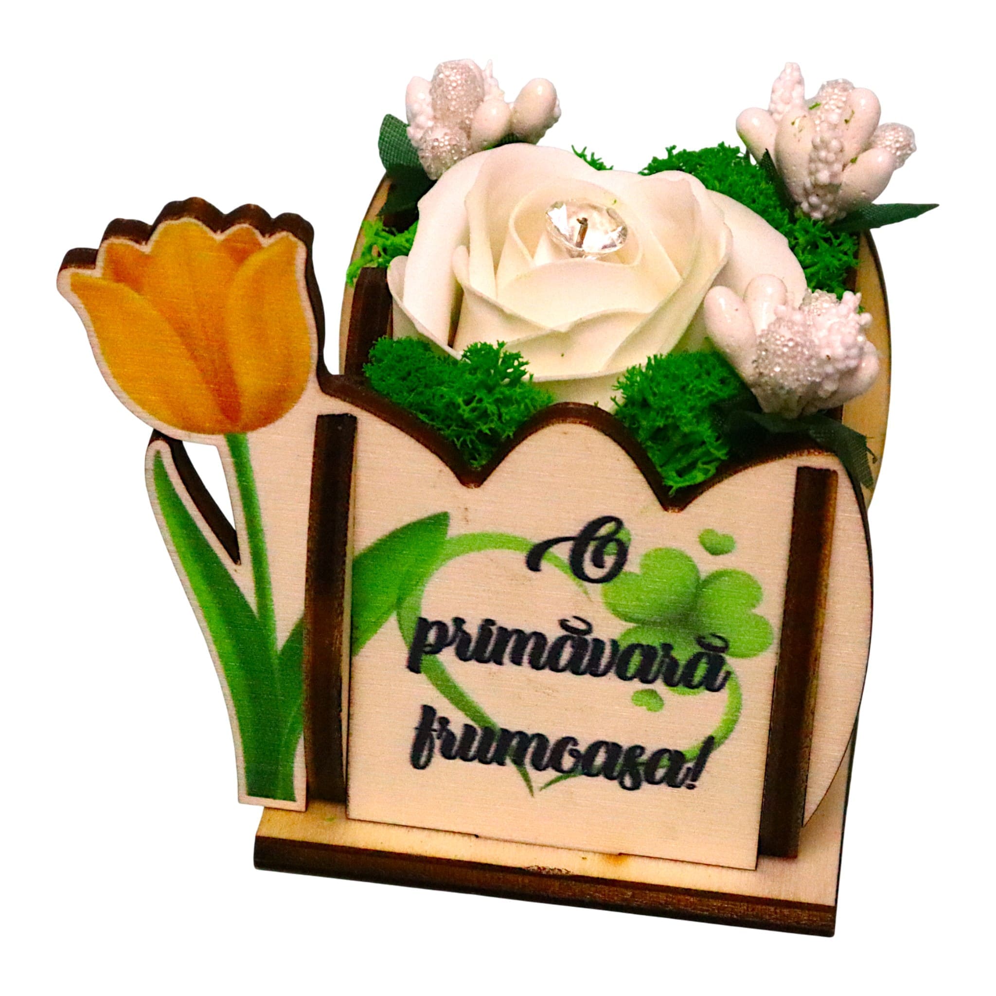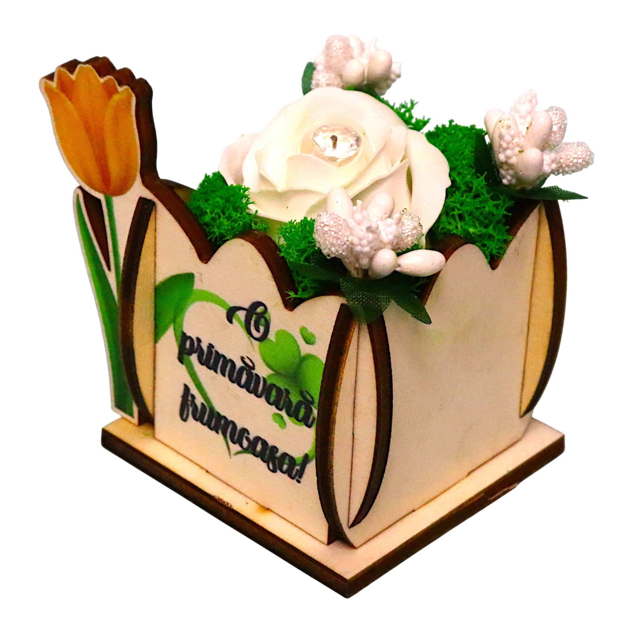 Martisor in Cutie, Trandafir de Sapun, 8×7 cm, Alb, CMUV039