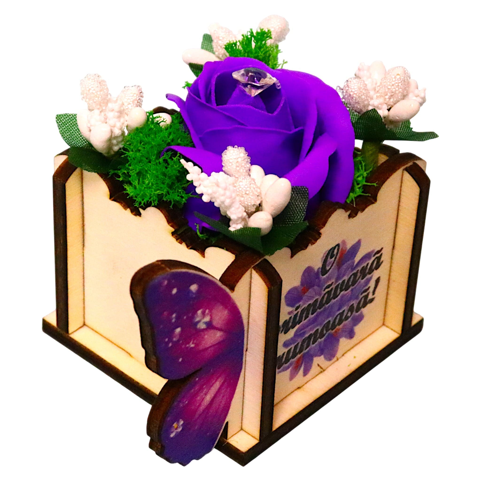 Martisor in Cutie, Trandafir de Sapun, 9×6 cm, Mov, CMUV043