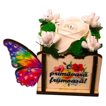 Formă: Suport dreptunghiular cu element decorativ – fluture;