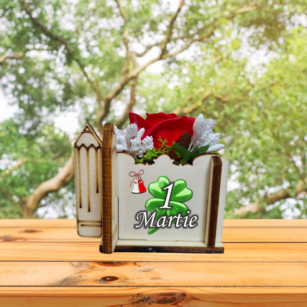 Acest mărțișor în cutie reprezintă un cadou elegant și modern, perfect pentru a celebra începutul primăverii și pentru a transmite un mesaj cald persoanelor dragi. Conceput special ca mărțișor profesoară, acest produs combină frumusețea tradiției cu rafinamentul unui aranjament floral miniatural, fiind ideal pentru profesoare, educatoare sau doamne cărora vrei să le oferi un gest simbolic, dar memorabil. Cutia este realizată din lemn imprimat UV, ceea ce îi conferă durabilitate, culori intense și un aspect deosebit, potrivit pentru un dar de calitate.
