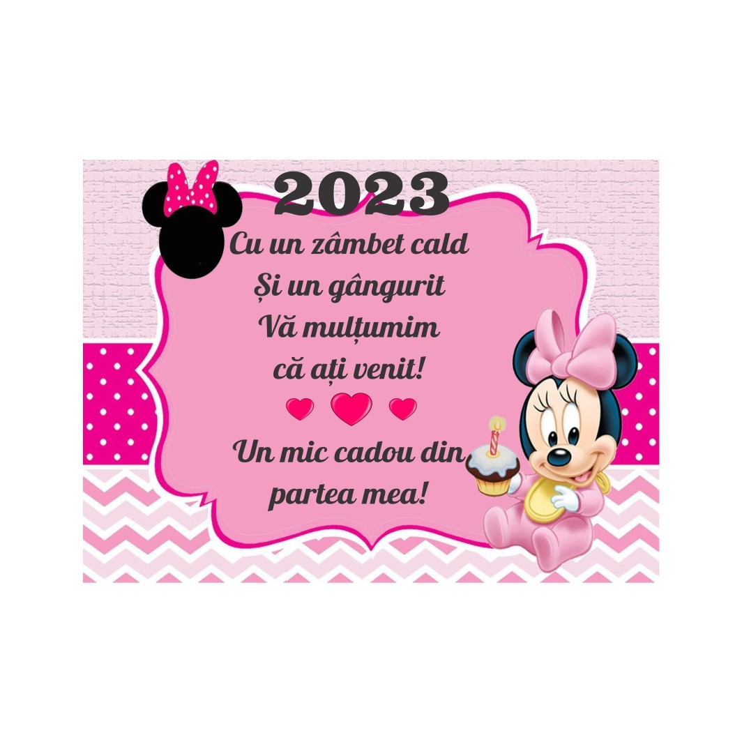 Marturie botez cu urare, Minnie Mouse, Magnet,10×7.5 cm, MGB009, Roz