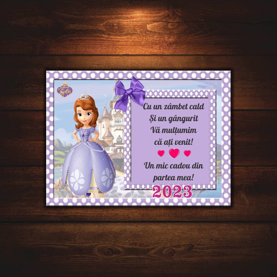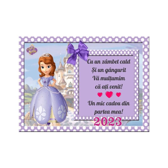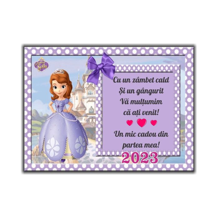 Marturie botez cu urare, Printesa Sofia, Magnet,10×7.5 cm, MGB005, Mov