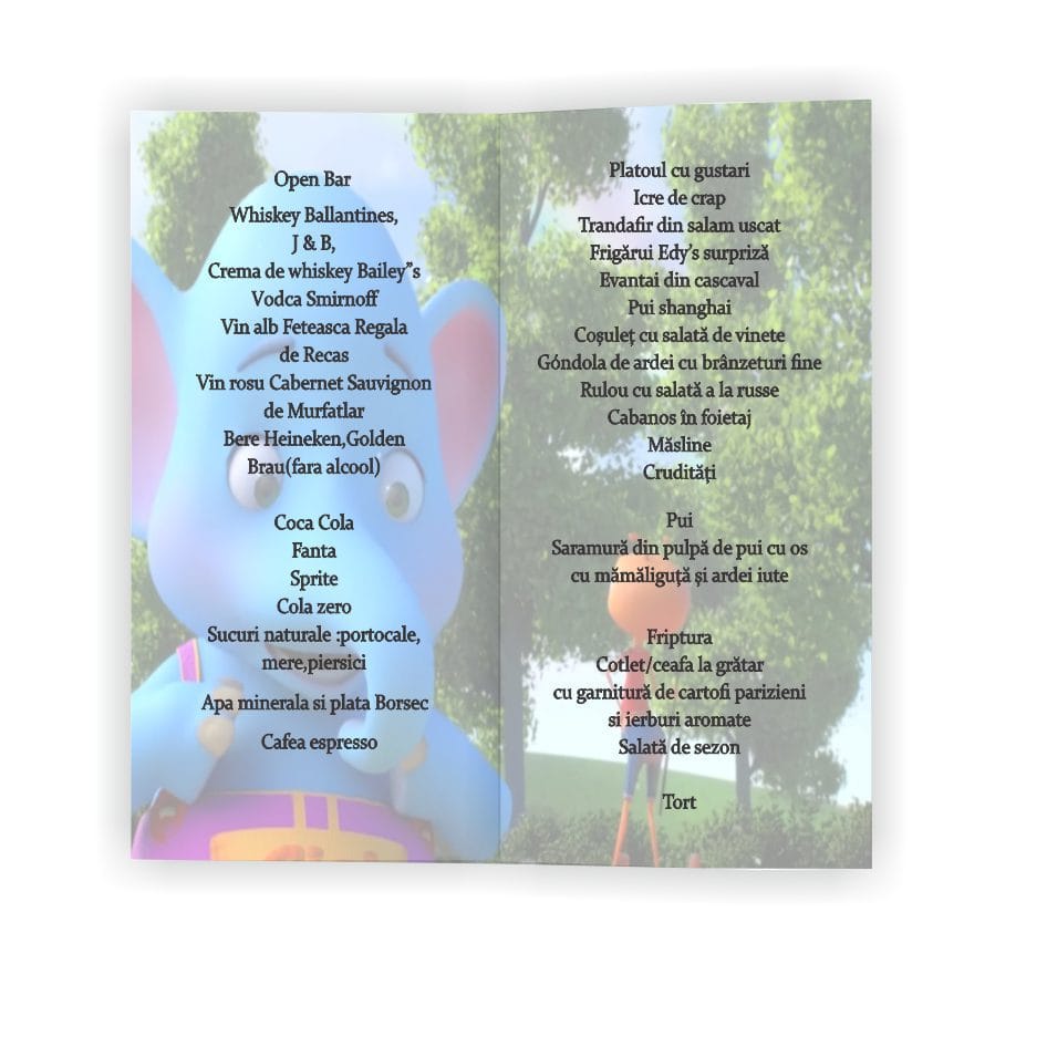 Meniu de masa, Botez, Model MB33, Elefantul Cici, Carton