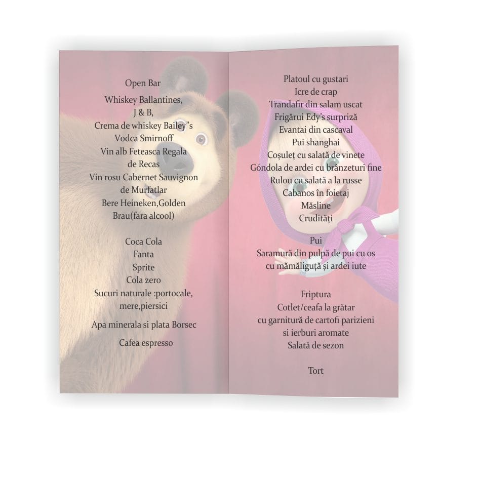 Meniu de masa, Botez, Model MB34, Masha si Ursul, Carton