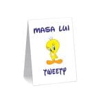 Numarul de masa este realizat pe carton alb si are tiparite grafica si numarul mesei.