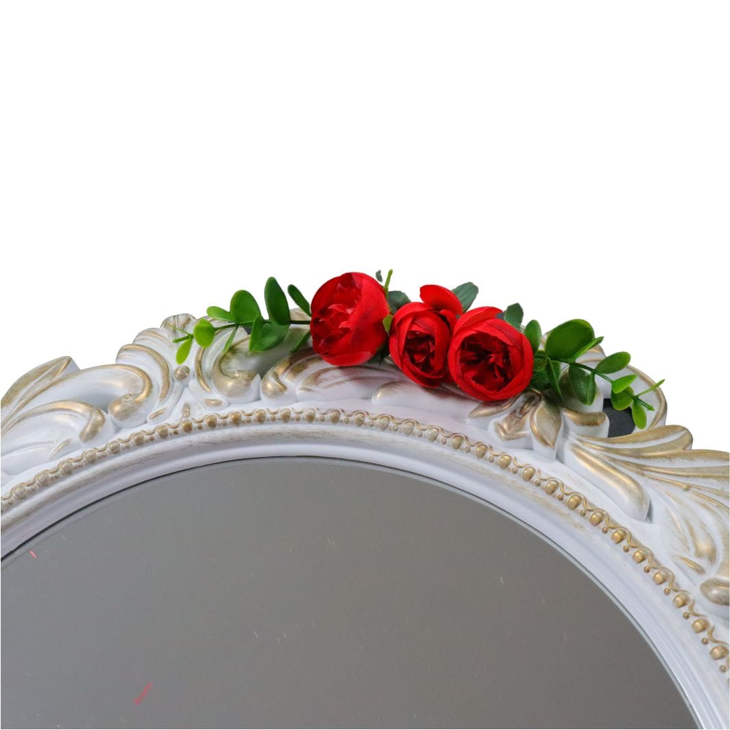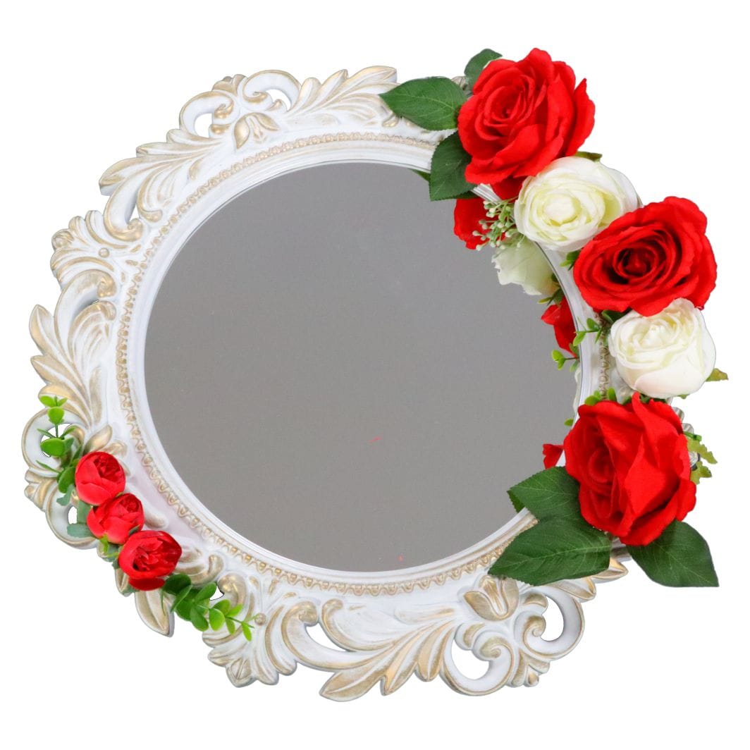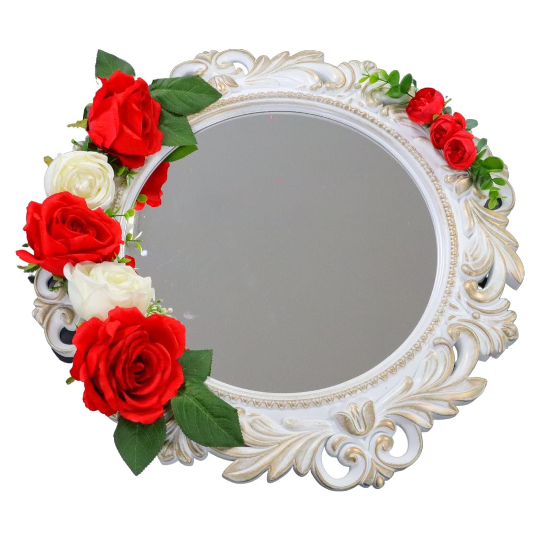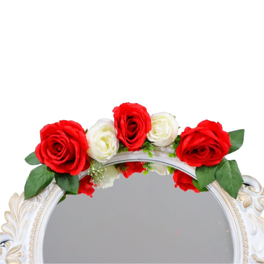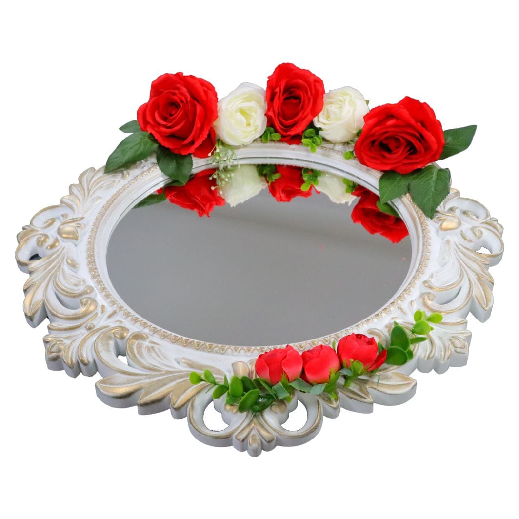 Oglinda Miresei Decorata, Trandafiri, Bujori, Rosu, Alb, 47 cm, OGLDC001