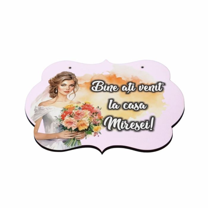 Pancarta Bine Ati Venit, Mireasa, Nunta, Portocaliu, 40x31cm, PBUV001