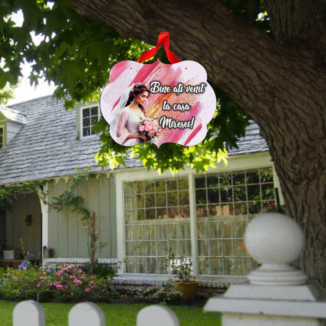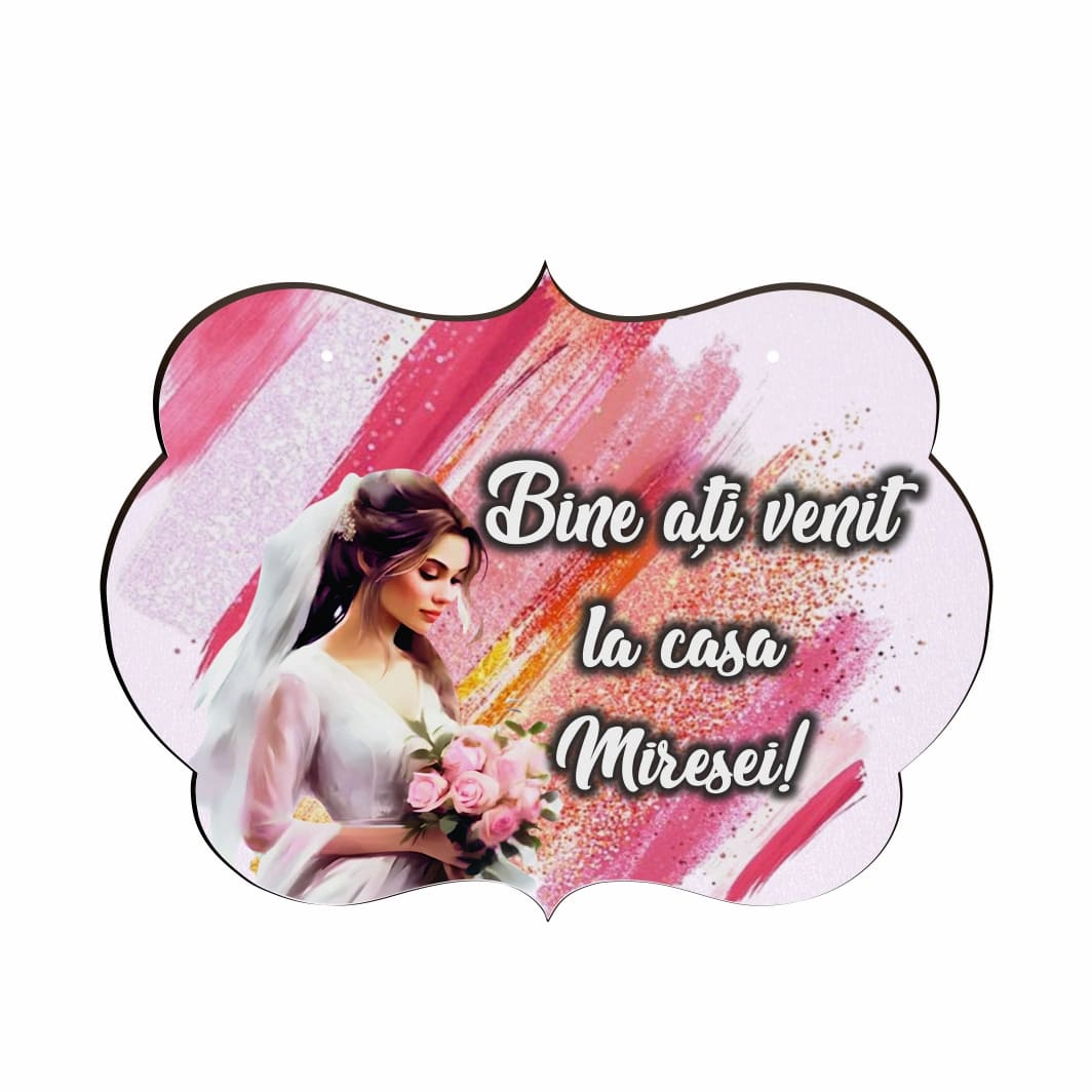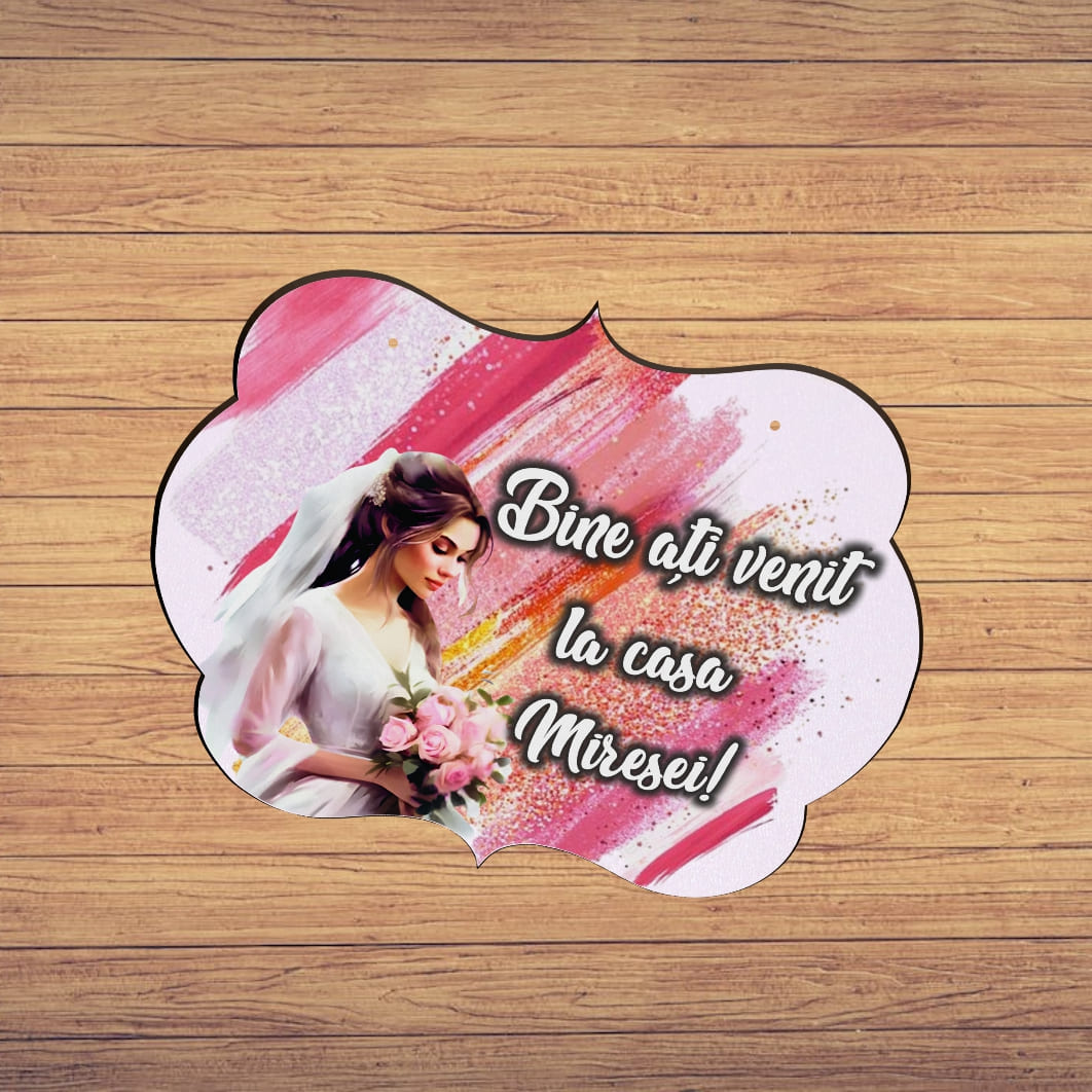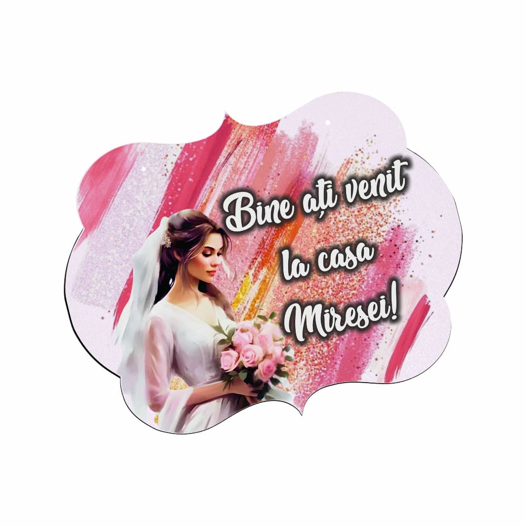 Pancarta Bine Ati Venit la casa Miresei, Nunta, Rosu, 40x31cm, PBUV022