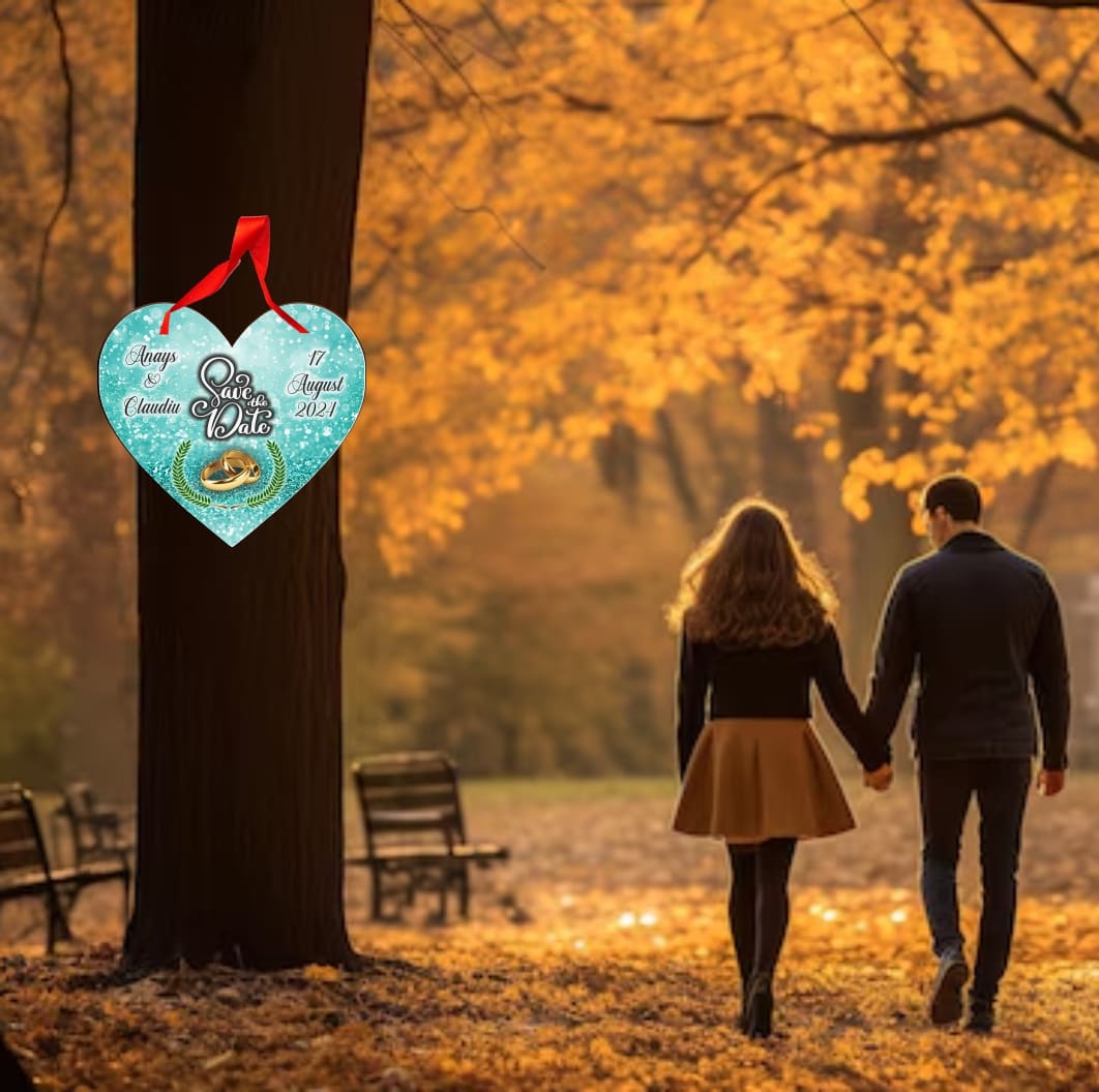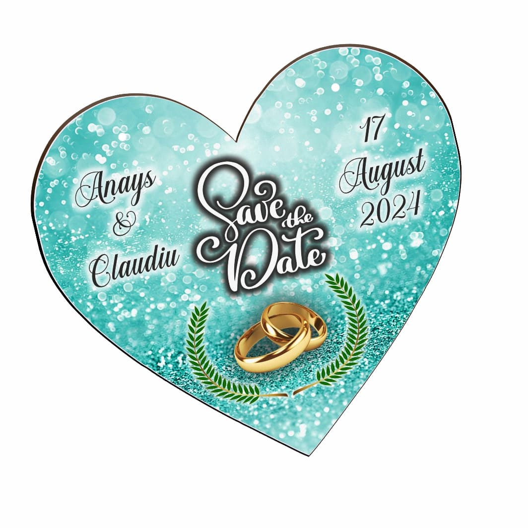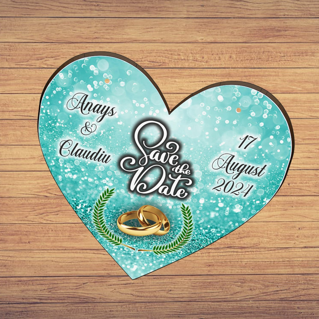 Pancarta Save The Date, Nunta, Verde, Turcoaz, Inima, 30x28cm, PSDUV003