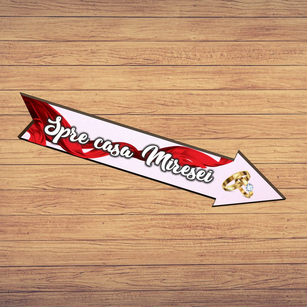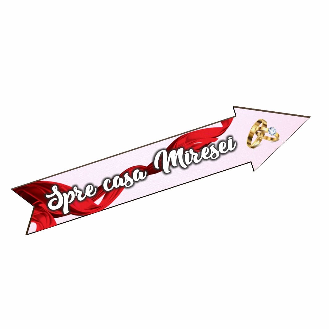 Pancarta Spre casa Miresei, Nunta, Rosu, 46×14 cm, PSNUV013