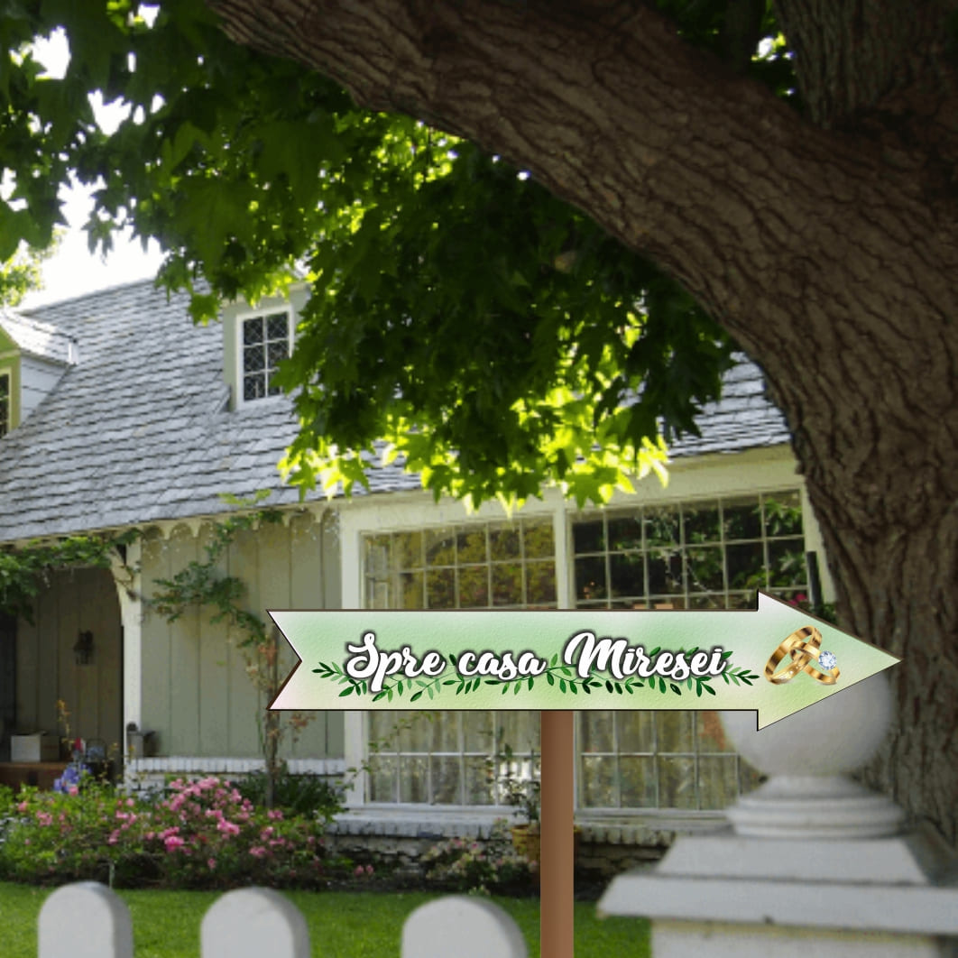 Pancarta Spre casa Miresei, Nunta, Verde, 46×14 cm, PSNUV007