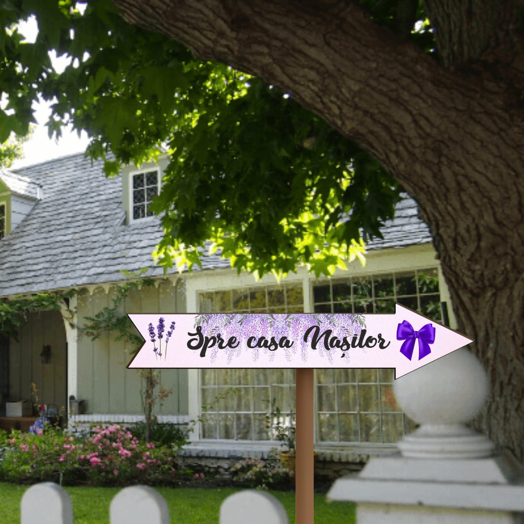 Pancarta Spre casa Nasilor, Nunta, Mov, 46×14 cm, PSNUV012