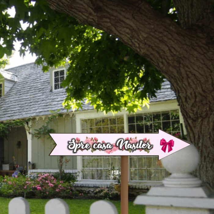Pancarta Spre casa Nasilor, Nunta, Roz, 46×14 cm, PSNUV006