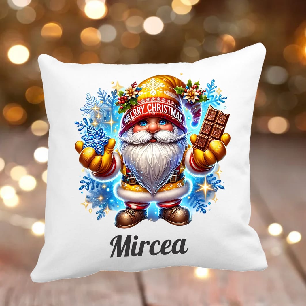 Perna personalizata , Craciun, Gnome, 40×40 cm, PC021