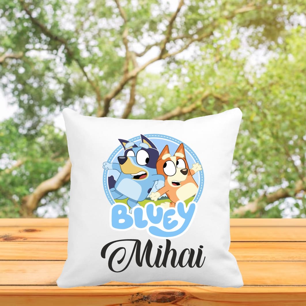 Perna personalizata cu nume, Gradinita, Bluey, 40×40 cm, PGR046