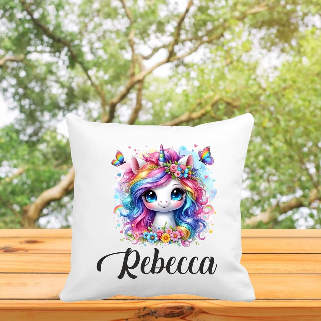 Perna personalizata cu nume, Gradinita, Unicorn, 40×40 cm, PGR051