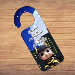 Placuta de usa completeaza perfect decorul realizat in ziua botezului.