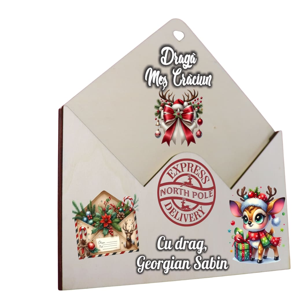 Plic din lemn, personalizat, ideal pentru scrisorile pregatite de cei mici pentru Mos Craciun.