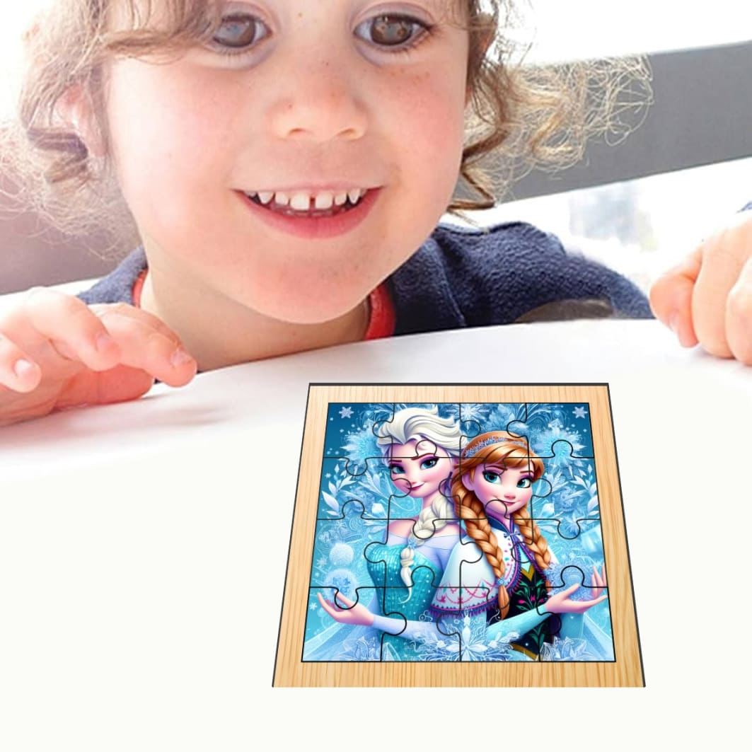 Puzzle din lemn, Frozen, 16 piese, Multicolor, 17×17 cm, PDUV046