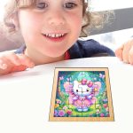 Puzzle din lemn, Hello Kitty, 16 piese, Multicolor, 17×17 cm, PDUV023