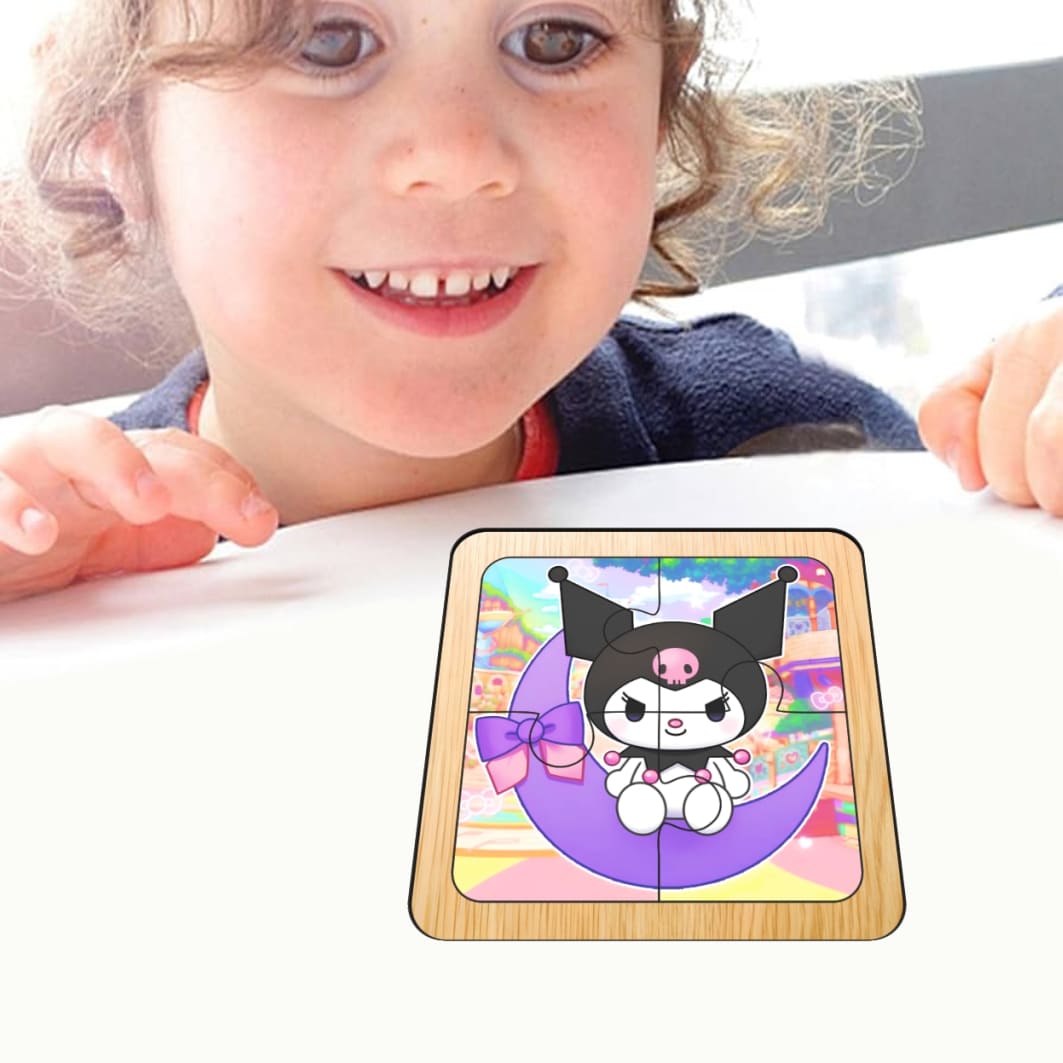 Puzzle din lemn, Kuromi, 4 piese, Multicolor, 10×10 cm, PDUV109