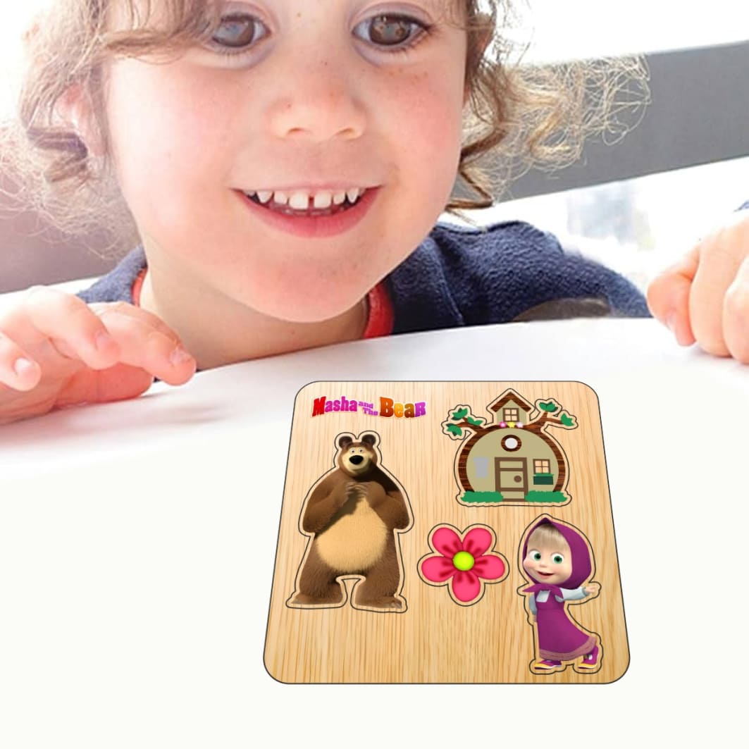 Puzzle din lemn, Masha si Ursul, Incastru, 4 piese, Multicolor, 12×12 cm, PDUV128