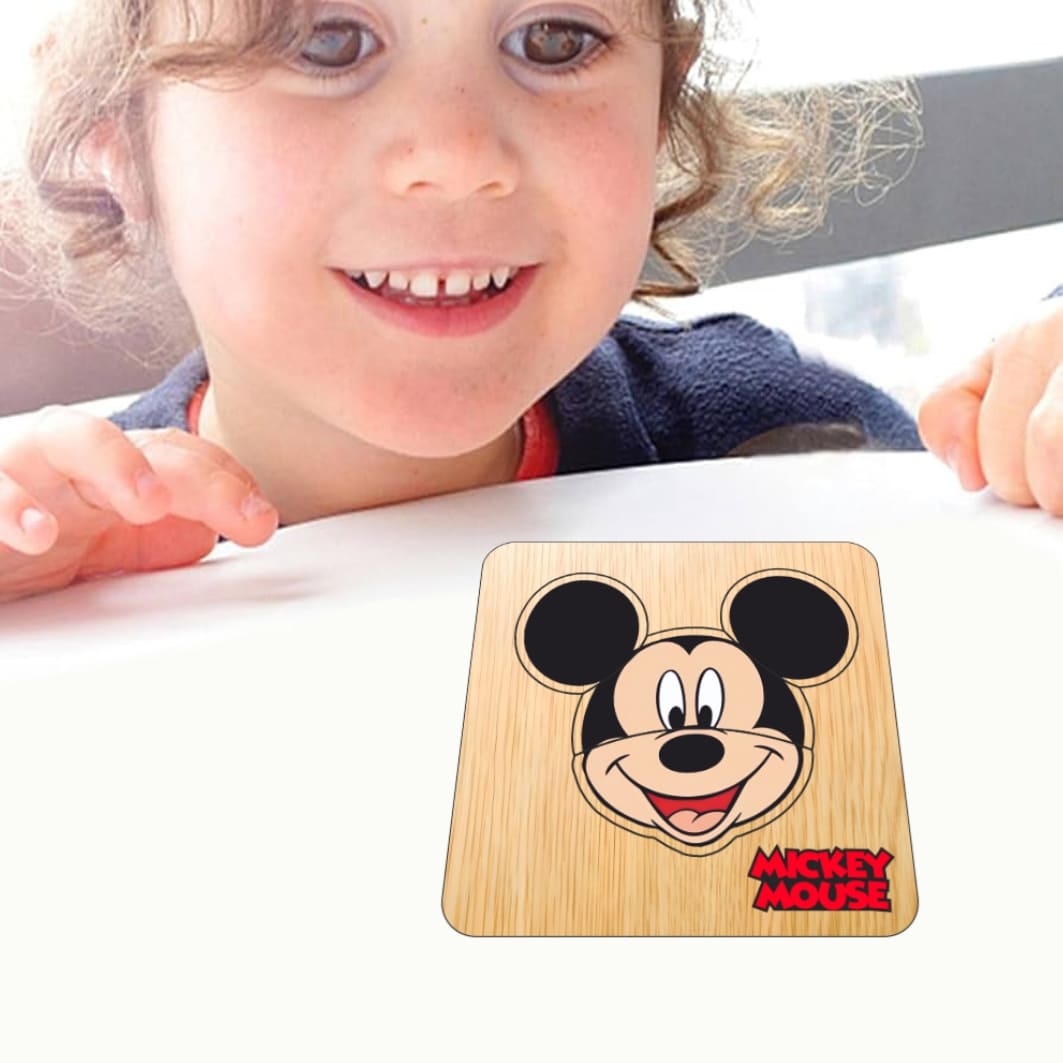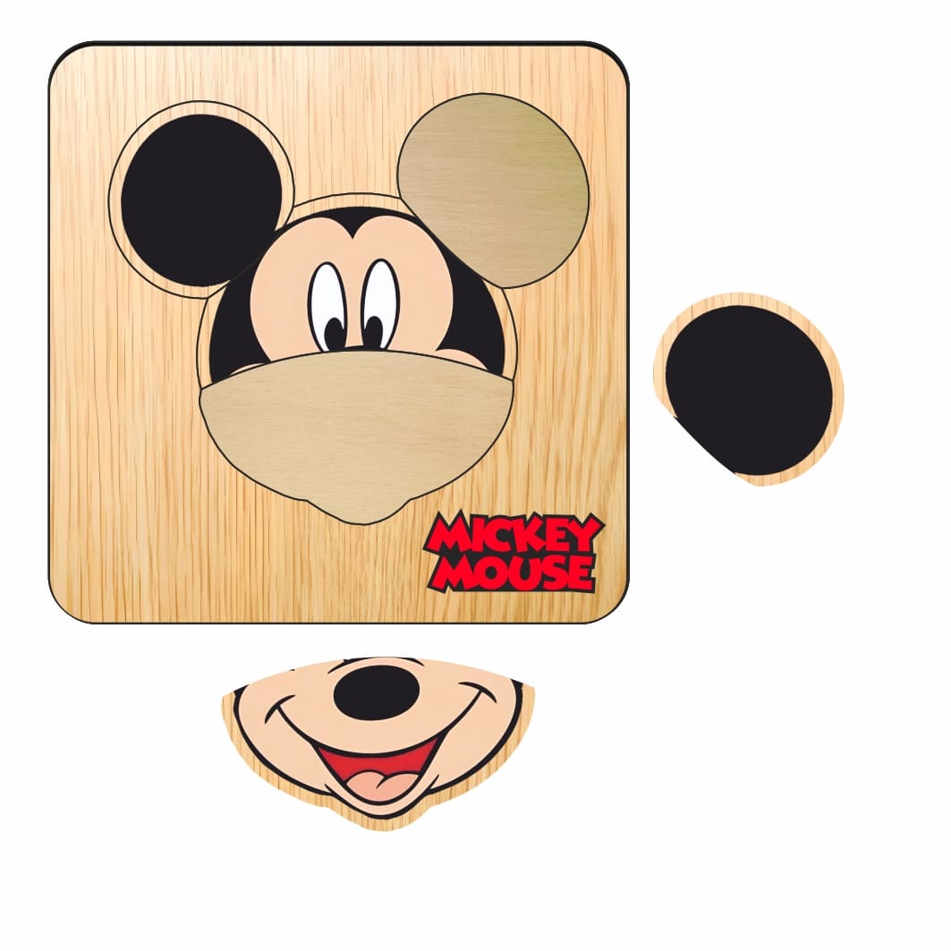 Puzzle din lemn, Mickey Mouse, Incastru, 4 piese, Multicolor, 12×12 cm, PDUV125