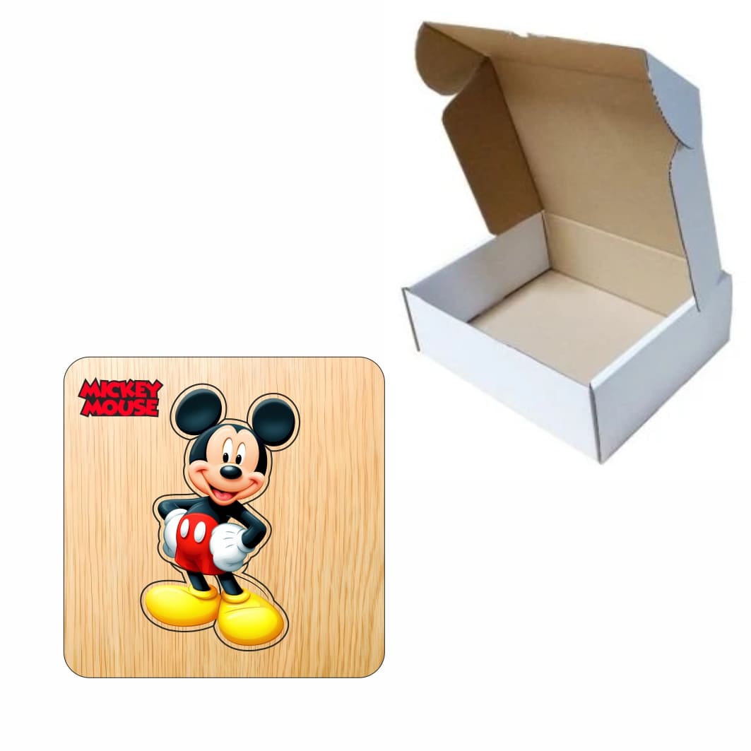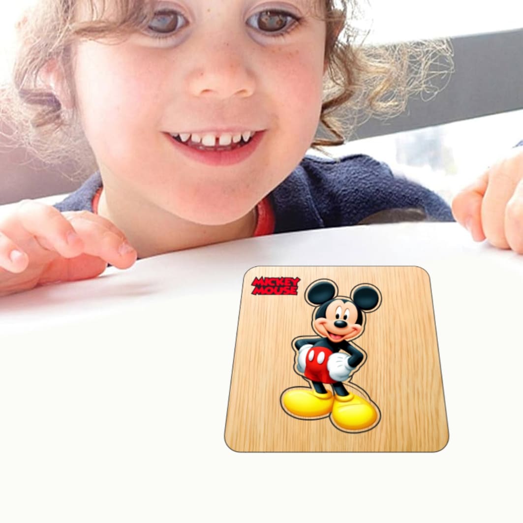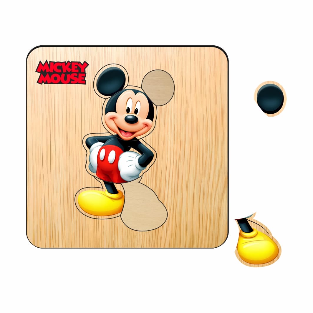 Puzzle din lemn, Mickey Mouse, 6 piese, Multicolor, 12×12 cm, PDUV124