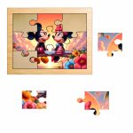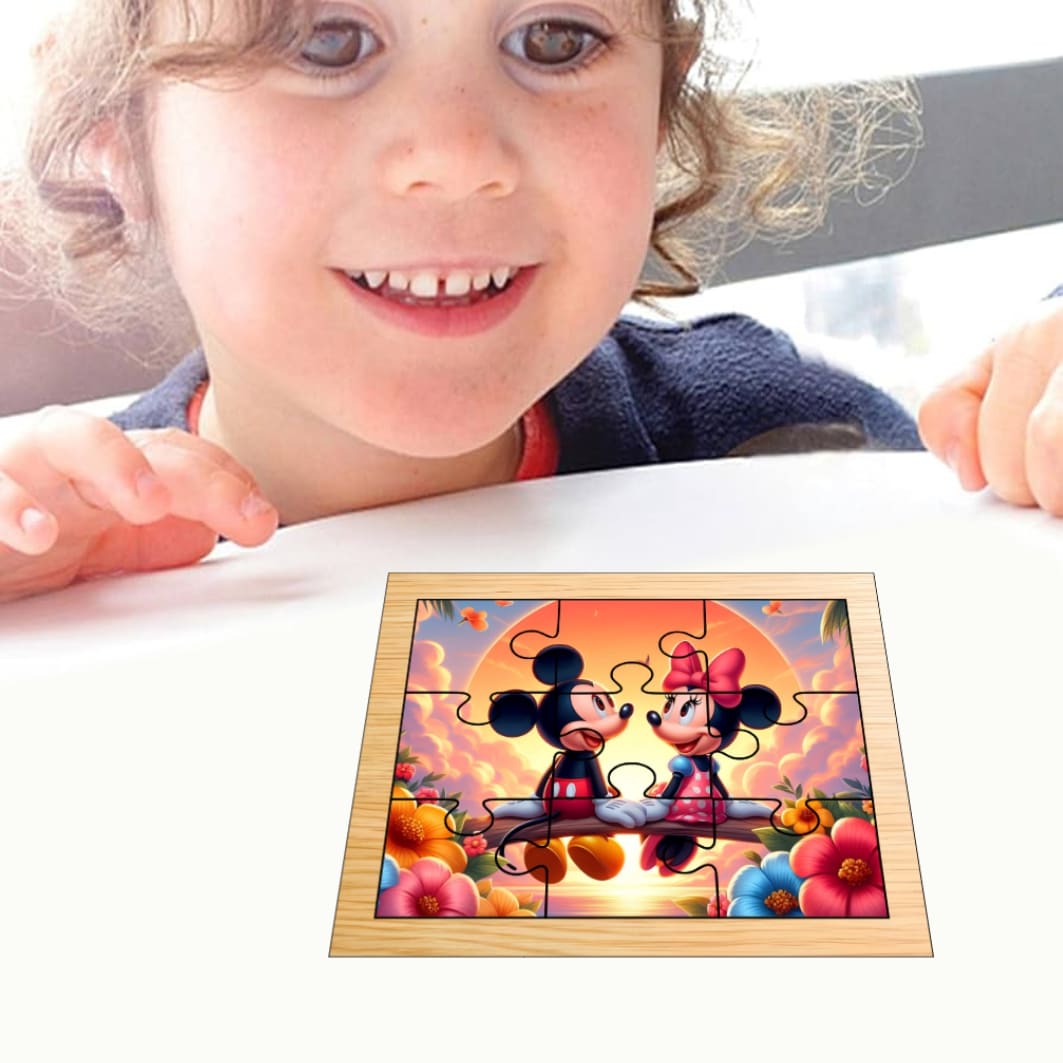 Puzzle din lemn, Mickey Mouse, Minnie Mouse, 9 piese, Multicolor, 15×12 cm, PDUV070