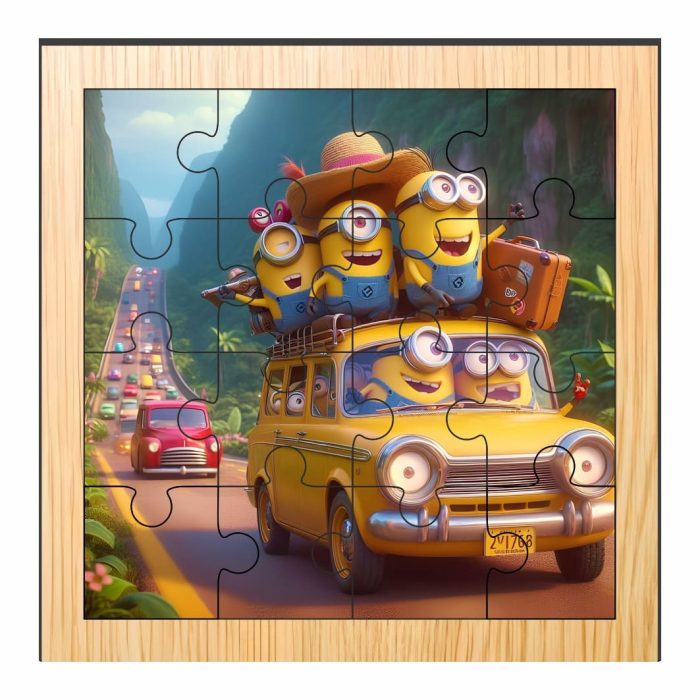 Puzzle din lemn, Minioni, 16 piese, Multicolor, 17×17 cm, PDUV037