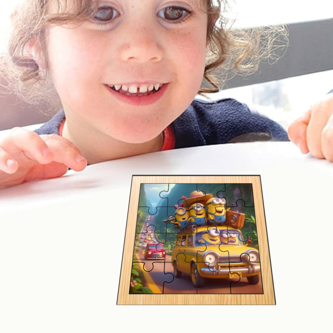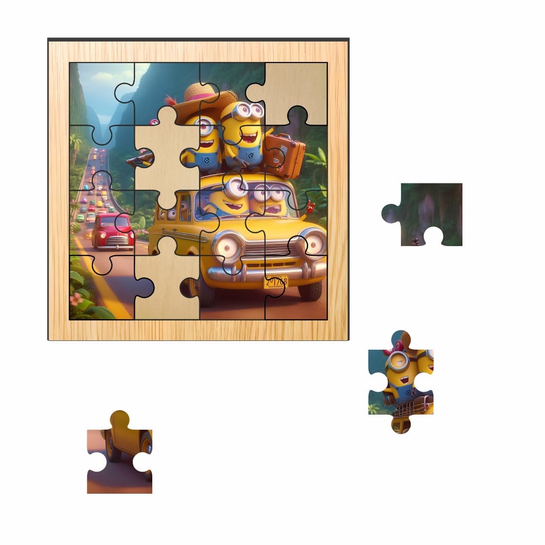 Puzzle din lemn, Minioni, 16 piese, Multicolor, 17×17 cm, PDUV037