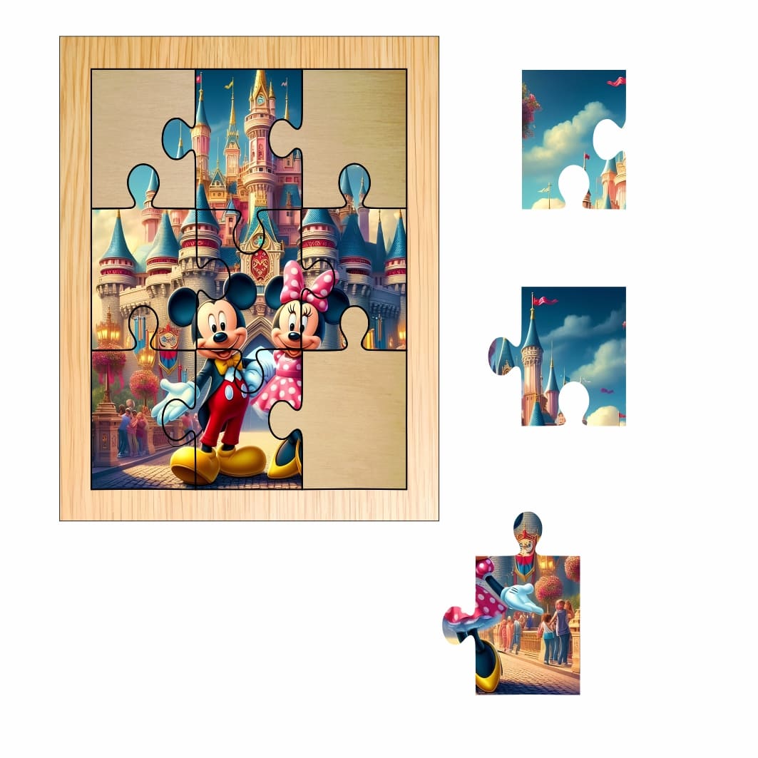 Puzzle din lemn, Minnie Mouse, Mickey Mouse, 9 piese, Multicolor, 15×12 cm, PDUV067