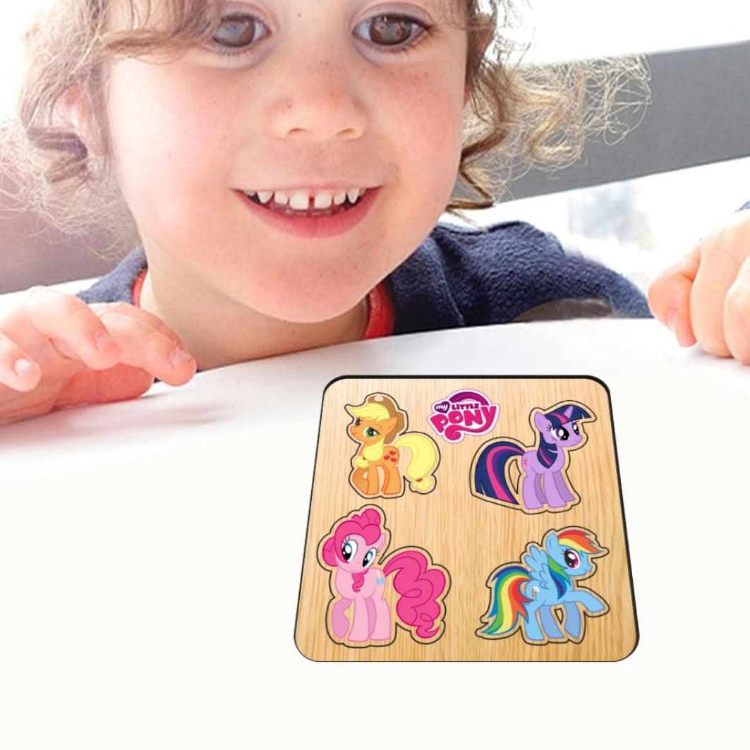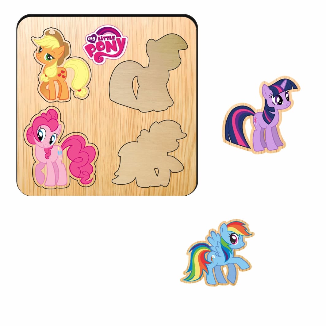 Puzzle din lemn, My Little Pony, 4 piese, Multicolor, 12×12 cm, PDUV117