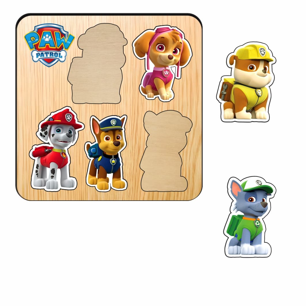 Puzzle din lemn, Patrula Catelusilor, Incastru, 5 piese, Multicolor, 12×12 cm, PDUV123