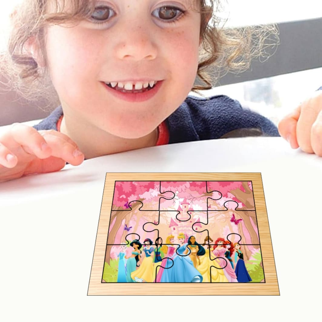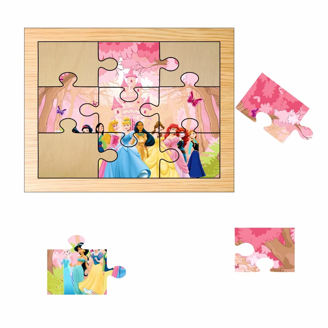 Puzzle din lemn, Printese, 9 piese, Multicolor, 15×12 cm, PDUV051