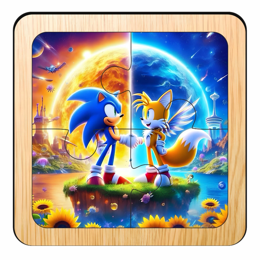 Puzzle din lemn, Sonic, 4 piese, Multicolor, 10×10 cm, PDUV104