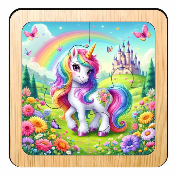 Puzzle din lemn, Unicorn, 4 piese, Multicolor, 10×10 cm, PDUV092