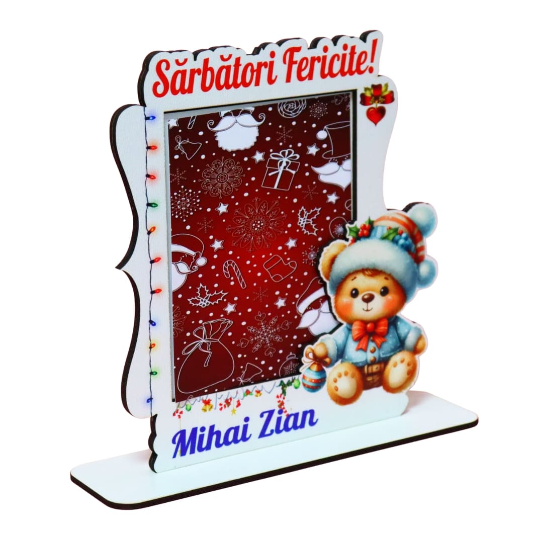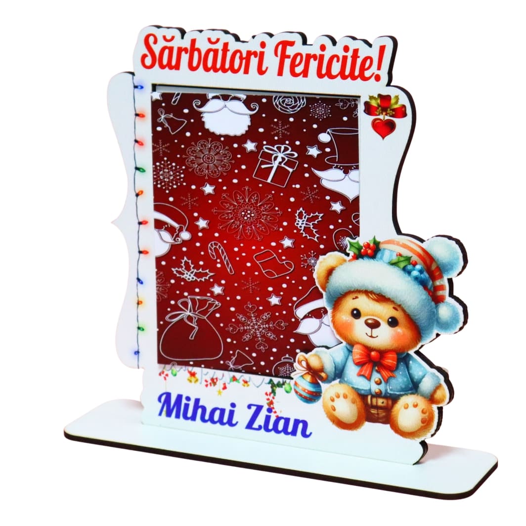 Rama Foto, Craciun fericit, Personalizata, Lemn, 17×15 cm, RFCUV006