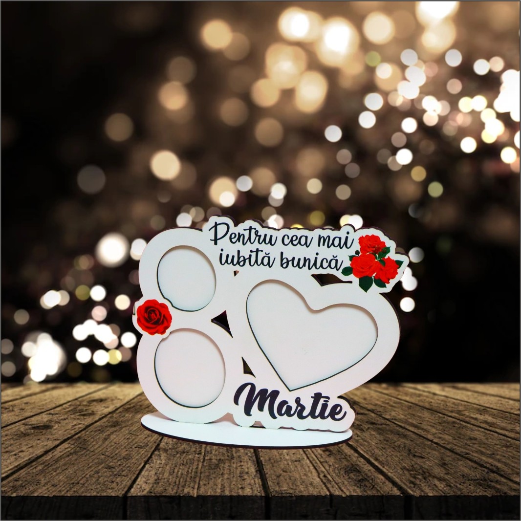 Rama foto din lemn cu tematica pentru luna Martie.