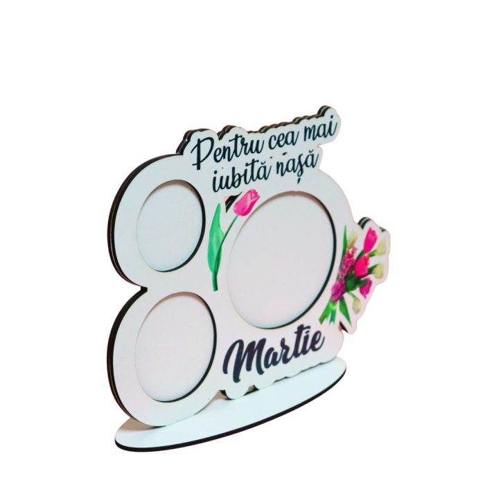 Materialul din lemn conferă un aspect natural și o rezistență sporită, făcând ca rama să se potrivească atât în decoruri moderne, cât și în cele clasice. Spre deosebire de obiectele decorative efemere, această ramă foto martie poate fi păstrată și admirată mult timp după trecerea sezonului, rămânând un simbol discret al primăverii și al momentelor frumoase.