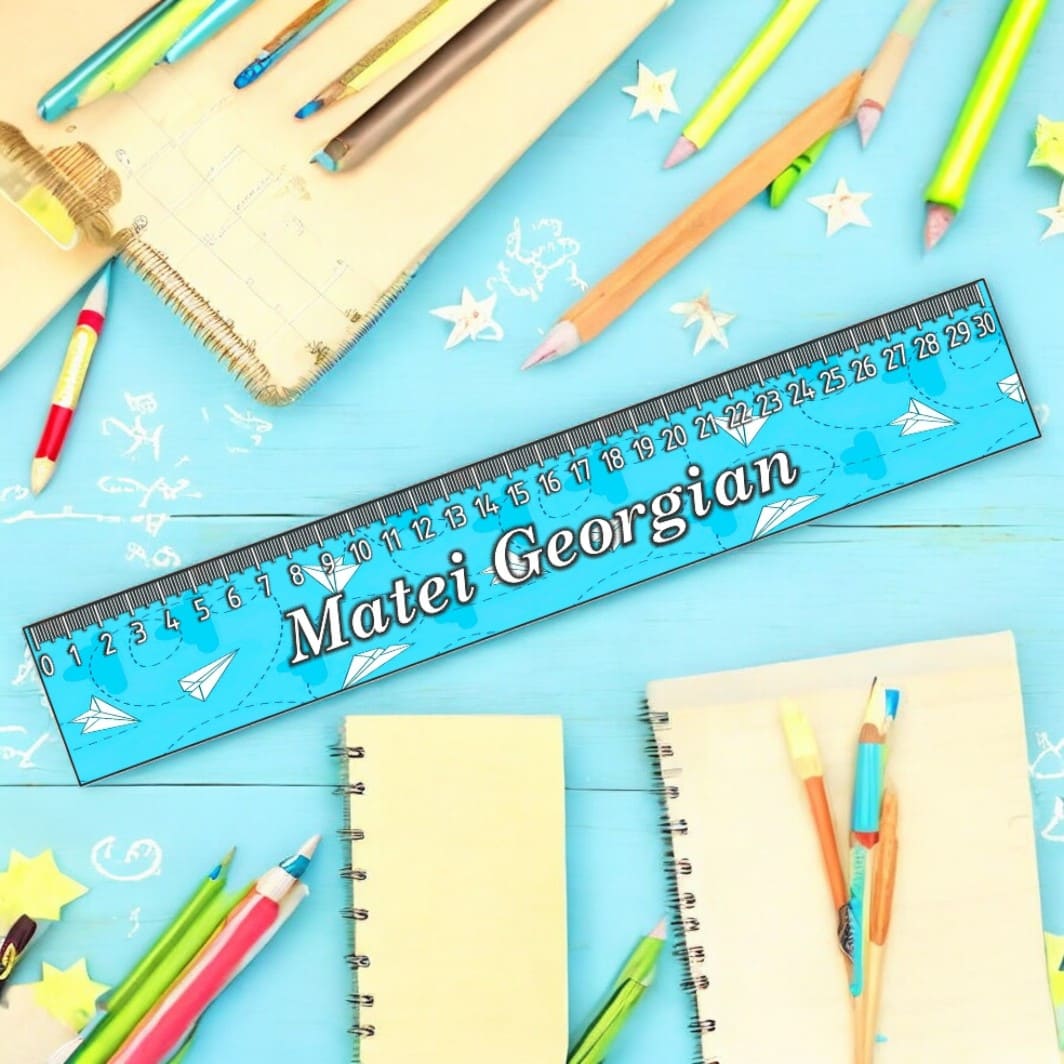 - *Personalizare:* Adăugarea numelui copilului face ca această *riglă personalizată* să fie un obiect unic și ușor de identificat, eliminând riscul de a fi pierdută sau confundată.