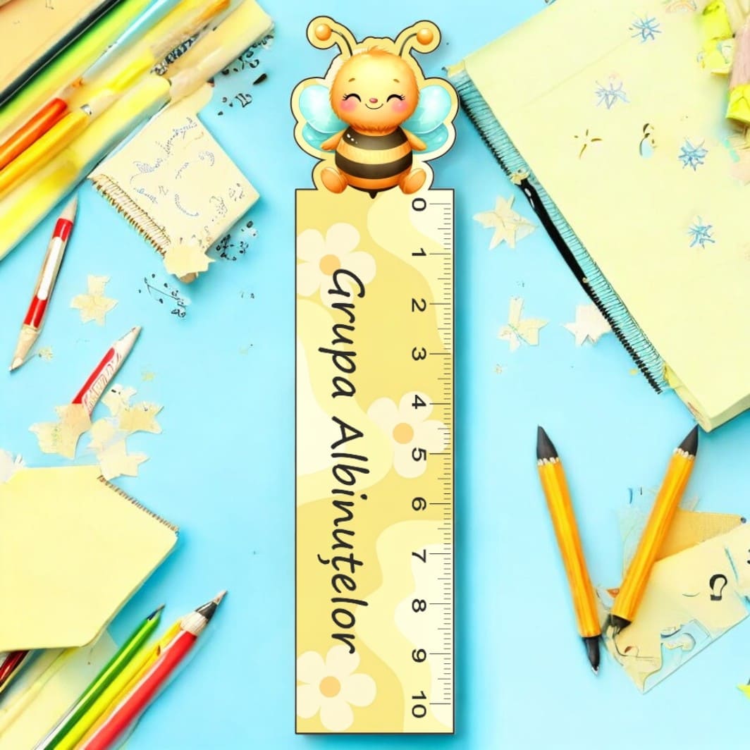 Căutați un instrument de măsură unic, durabil și distractiv pentru copilul dumneavoastră? *Rigla personalizată* modelul Albinuta (RGL007) combină designul vesel cu materialele de înaltă calitate, transformând orele într-o activitate plăcută. Fabricată din *lemn (HDF)* ecologic și robust, aceasta este mai mult decât un simplu accesoriu școlar: este o amintire personală pe care cel mic o va folosi cu drag an de an.
