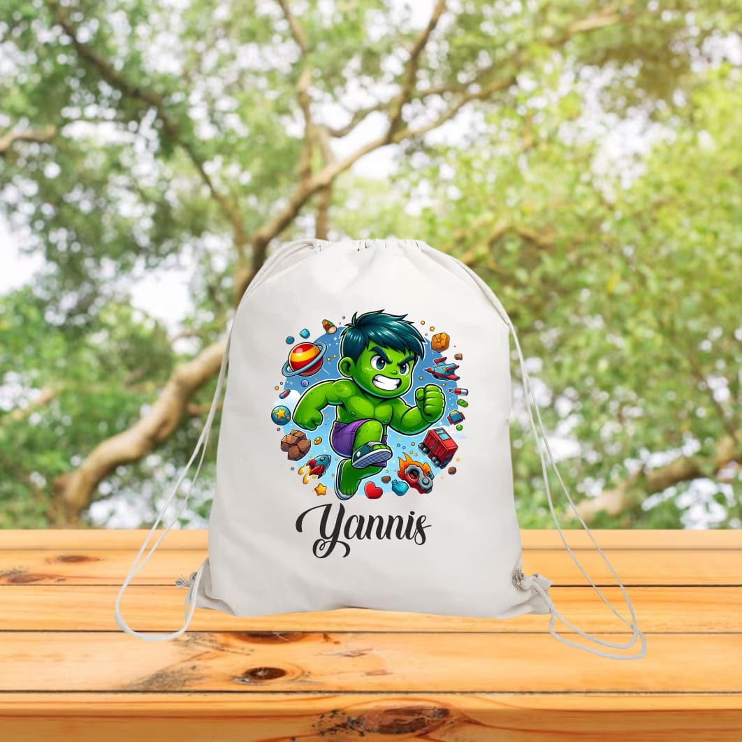 Rucsacul copii personalizat Supereroul Hulk este ideal pentru grădiniță, excursii și activitățile zilnice. Alege designul preferat, adaugă numele copilului și bucură-te de un produs unic, realizat cu drag în atelierul Ideal Moments!