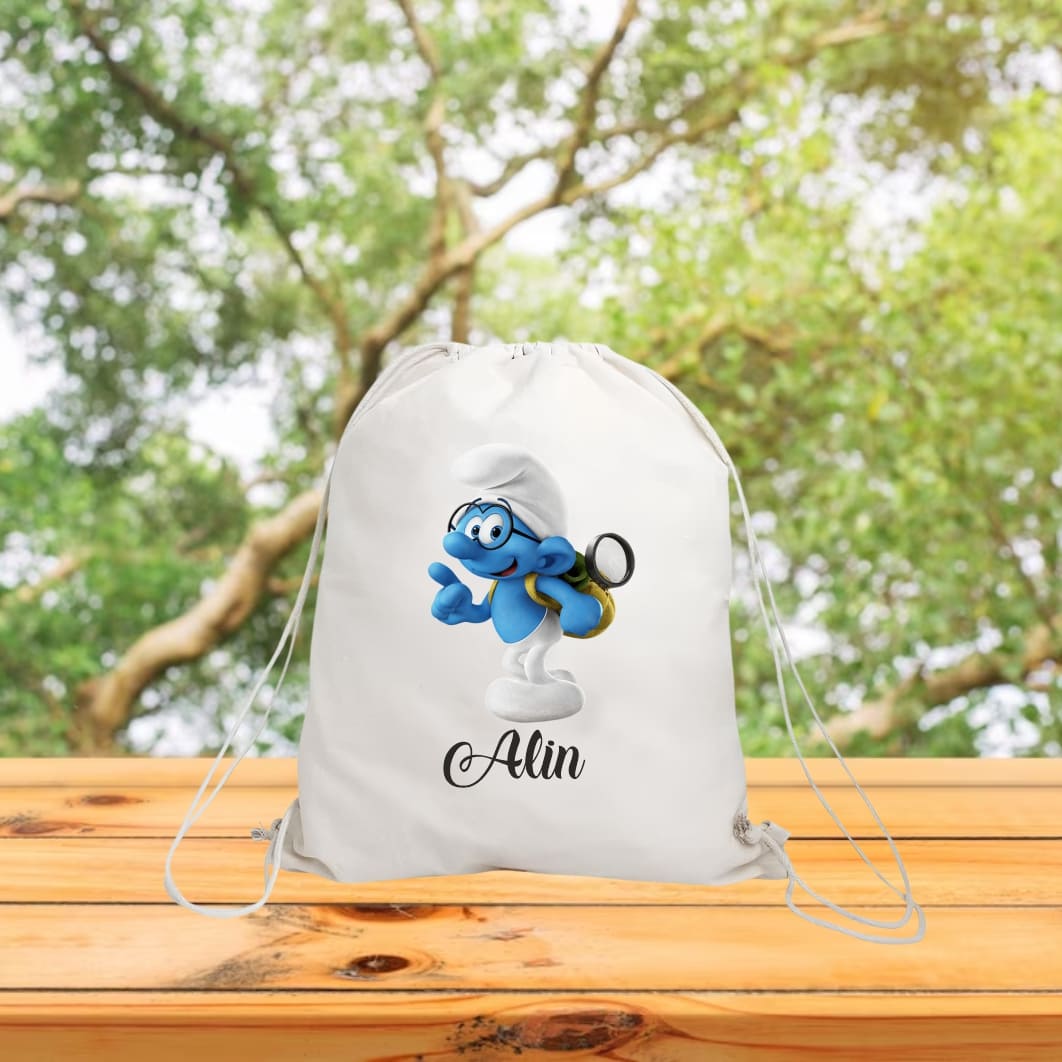 Rucsac personalizat cu nume, Gradinita, Strumf, 43×34 cm, RGR055