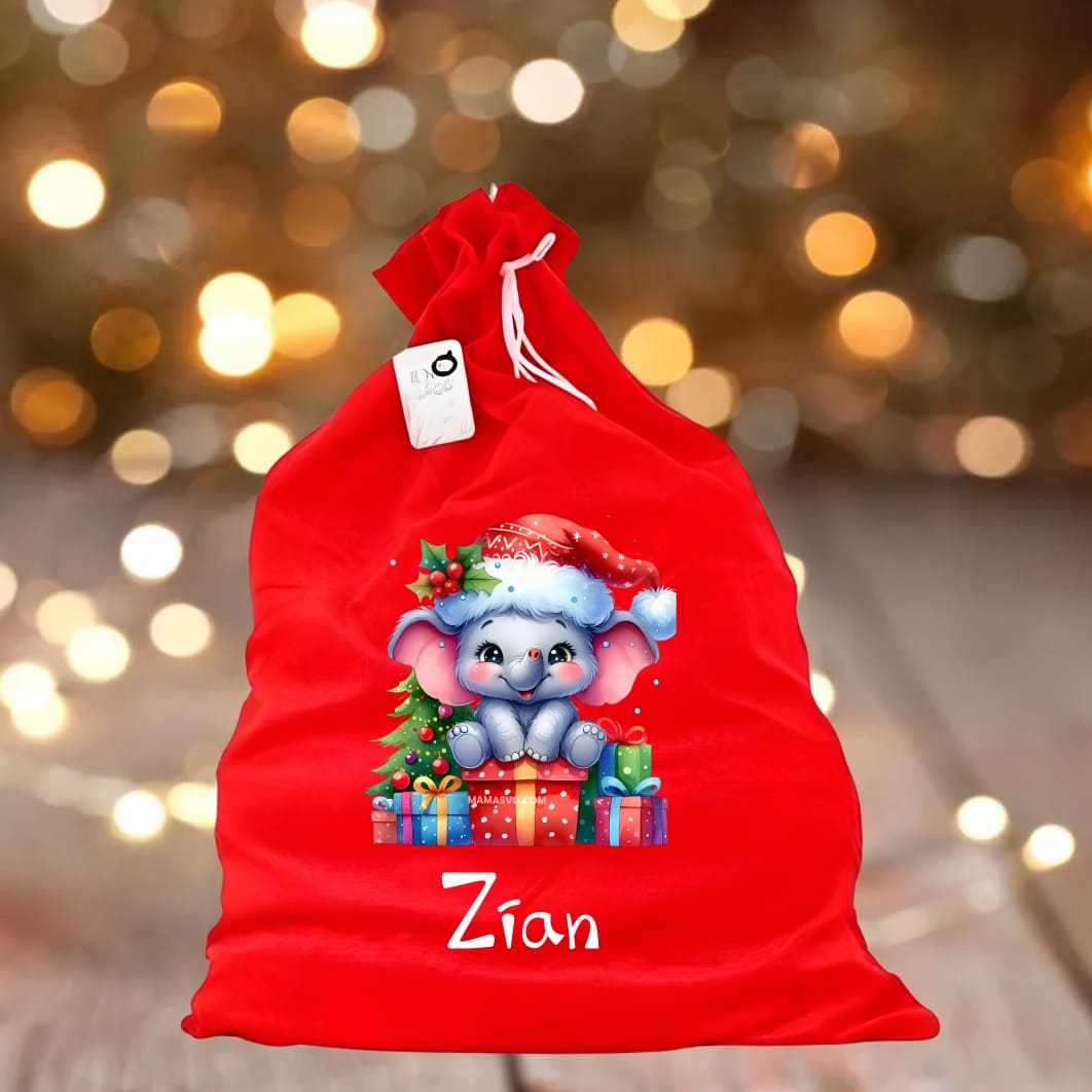 Sac Mos Craciun, Personalizat – Elefant, Cadouri, Rosu, 60 cm (SMCR004)