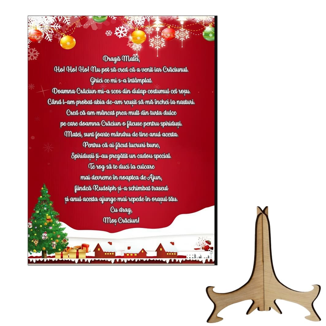 Scrisoare Mos Craciun, Lemn, 20x15 cm, SMCUV006 Prețul inițial a fost: 30,00 lei.Prețul curent este: 19,99 lei.